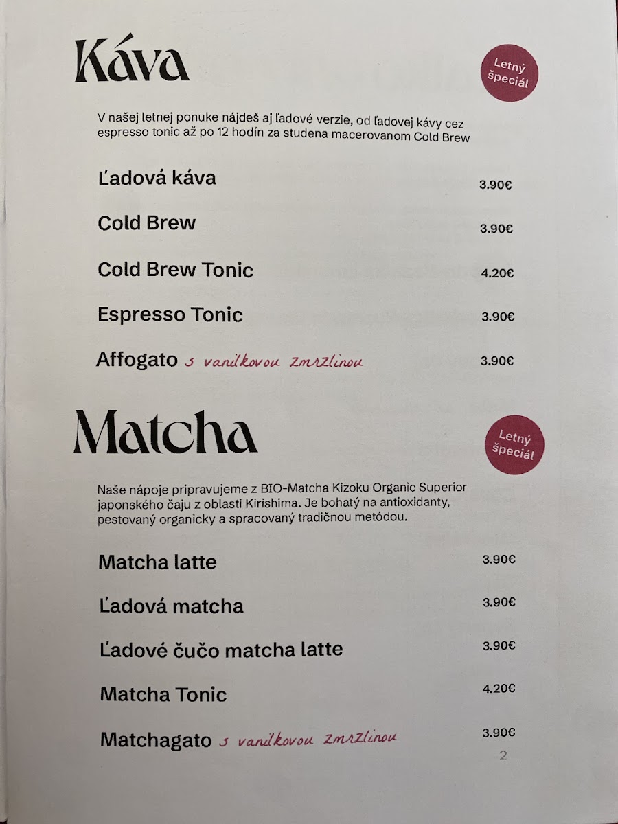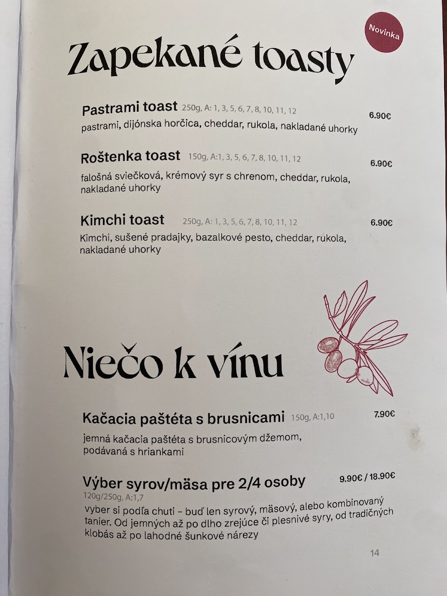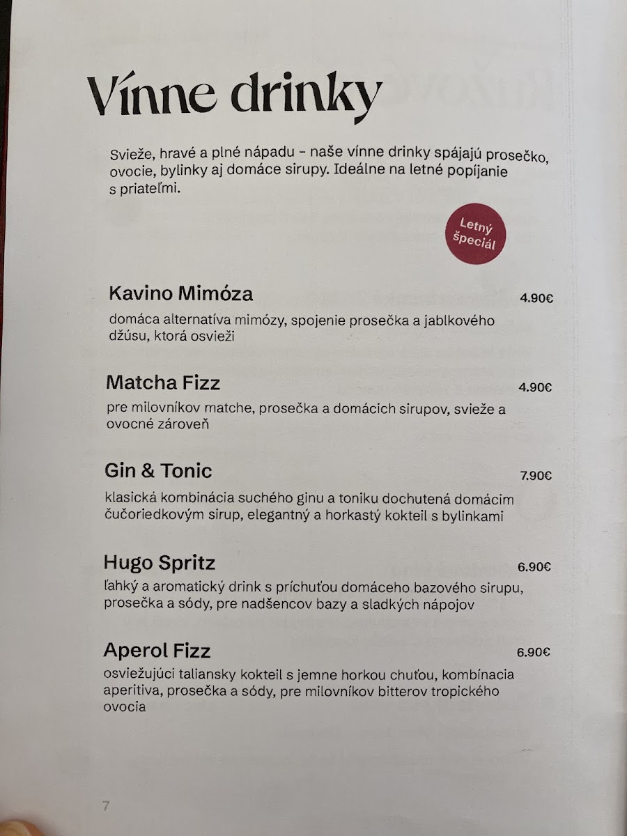 Kavino - Tvoja vináreň / kaviareň v Trnave Menu